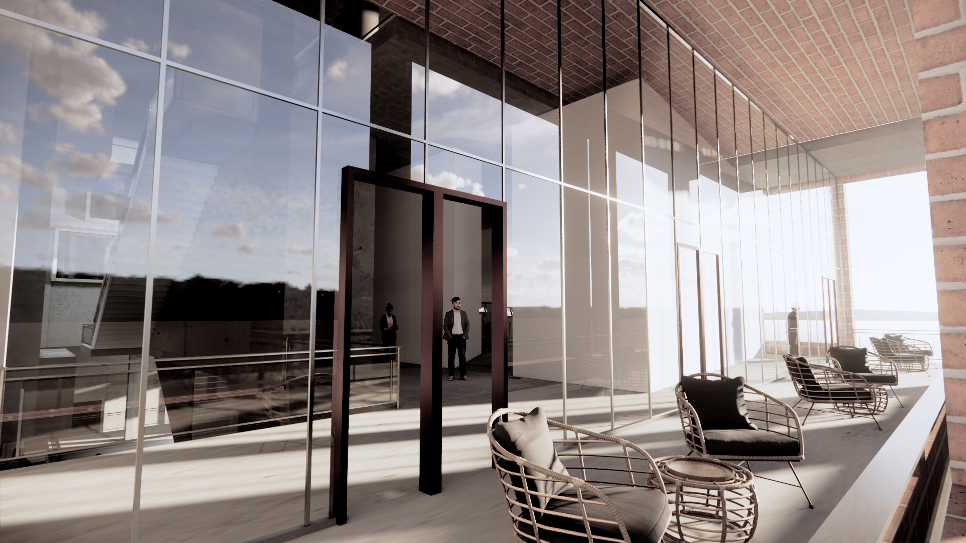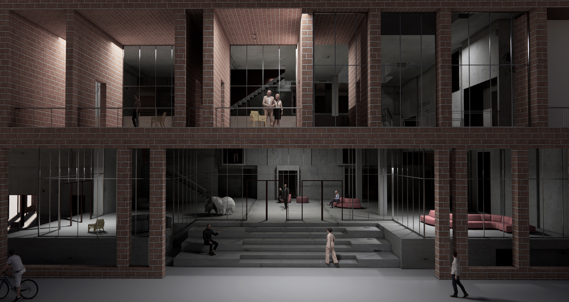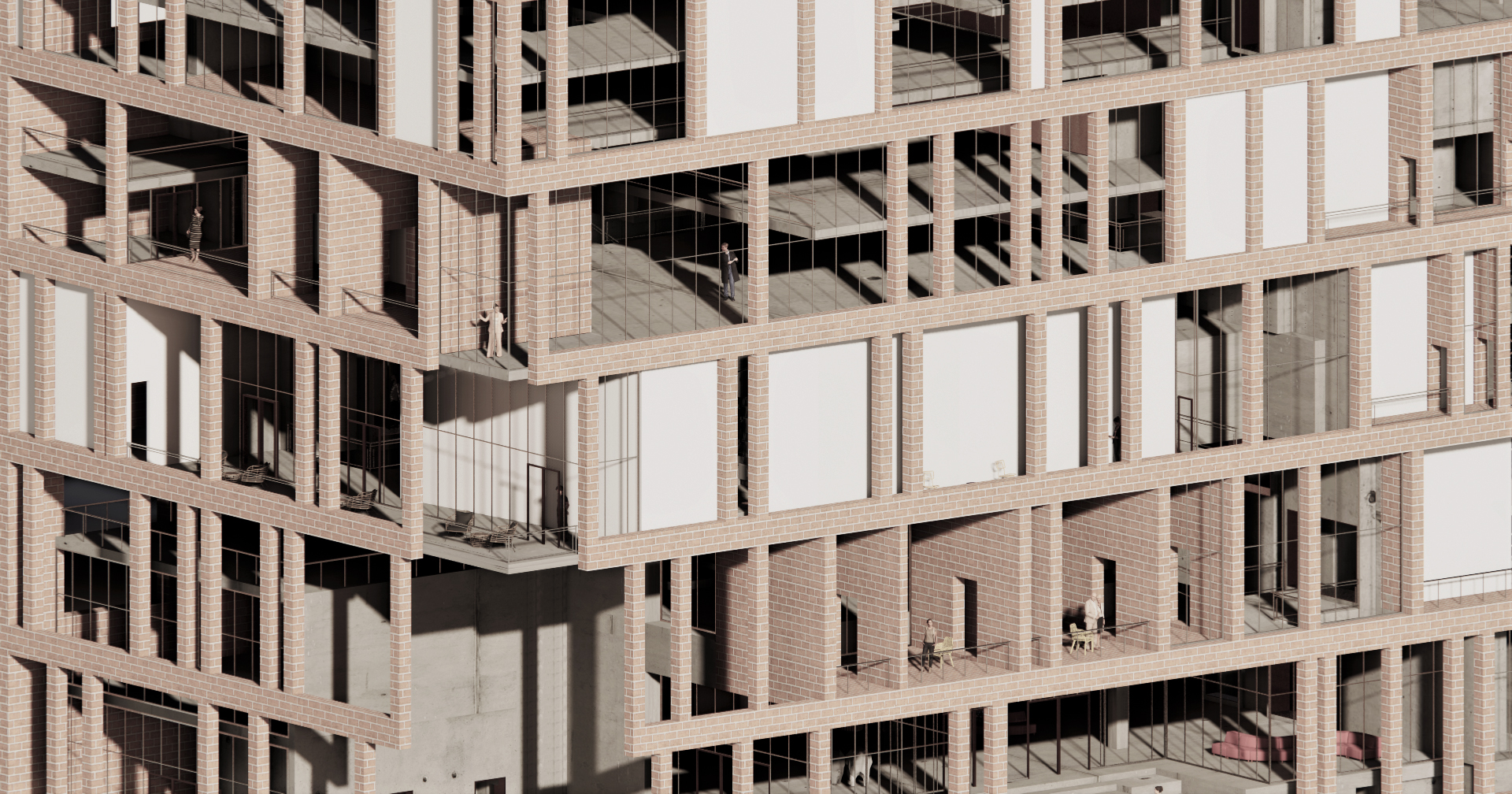 The brick facade acts not only as an exterior ornamental element but also as primary structure support and space connection. The facade structure deepens to creates rooms and terraces at specific moments of the building as shown above.