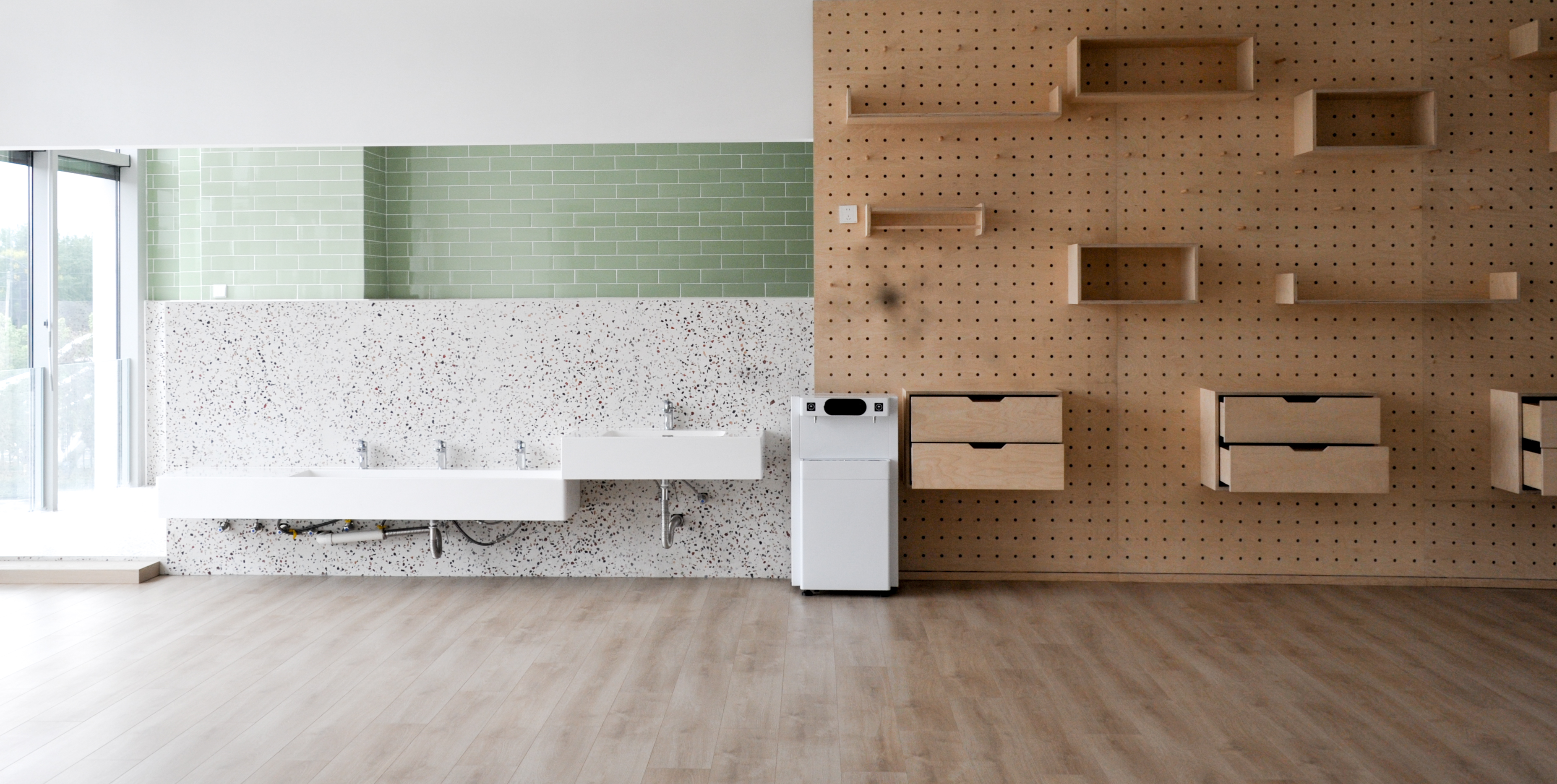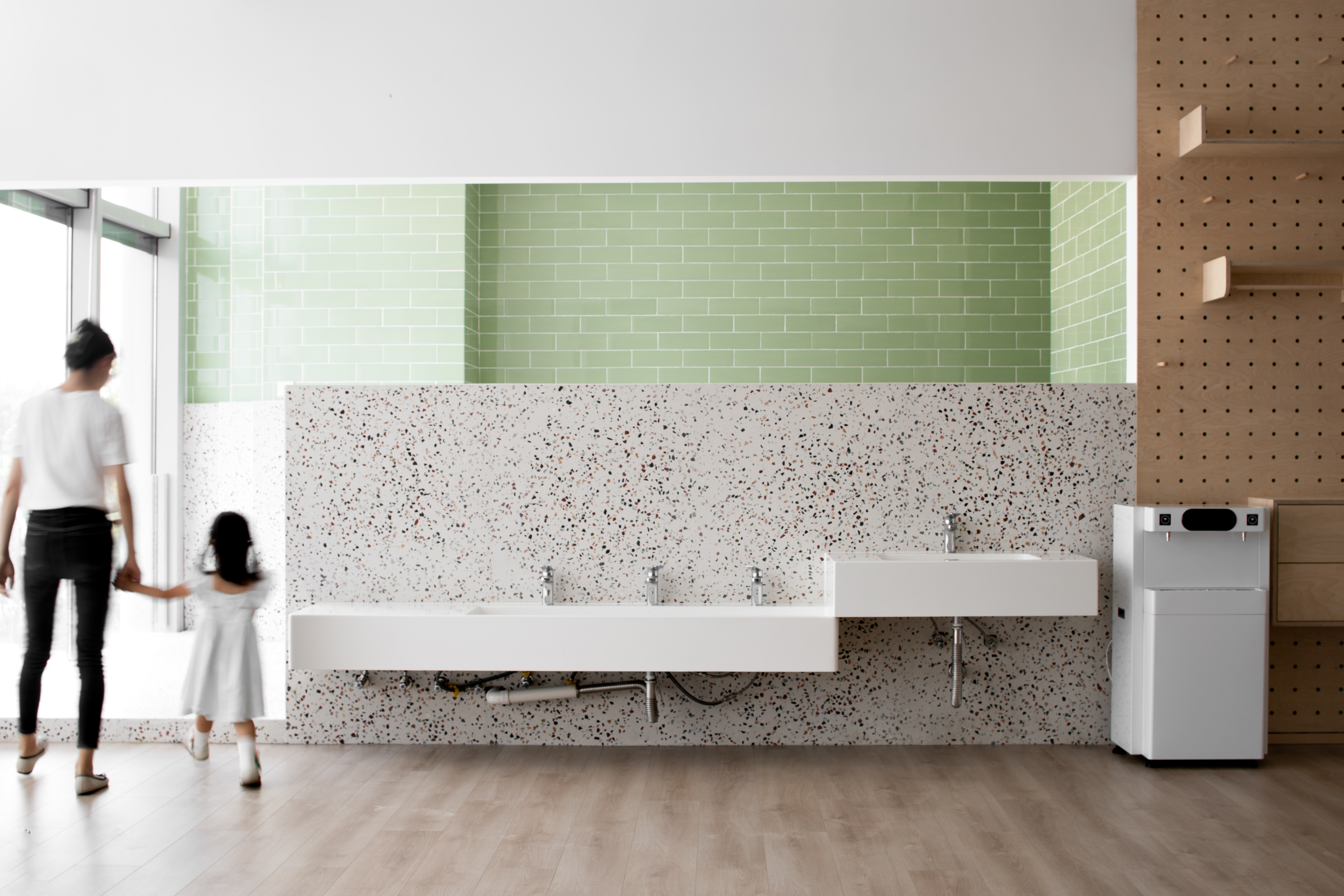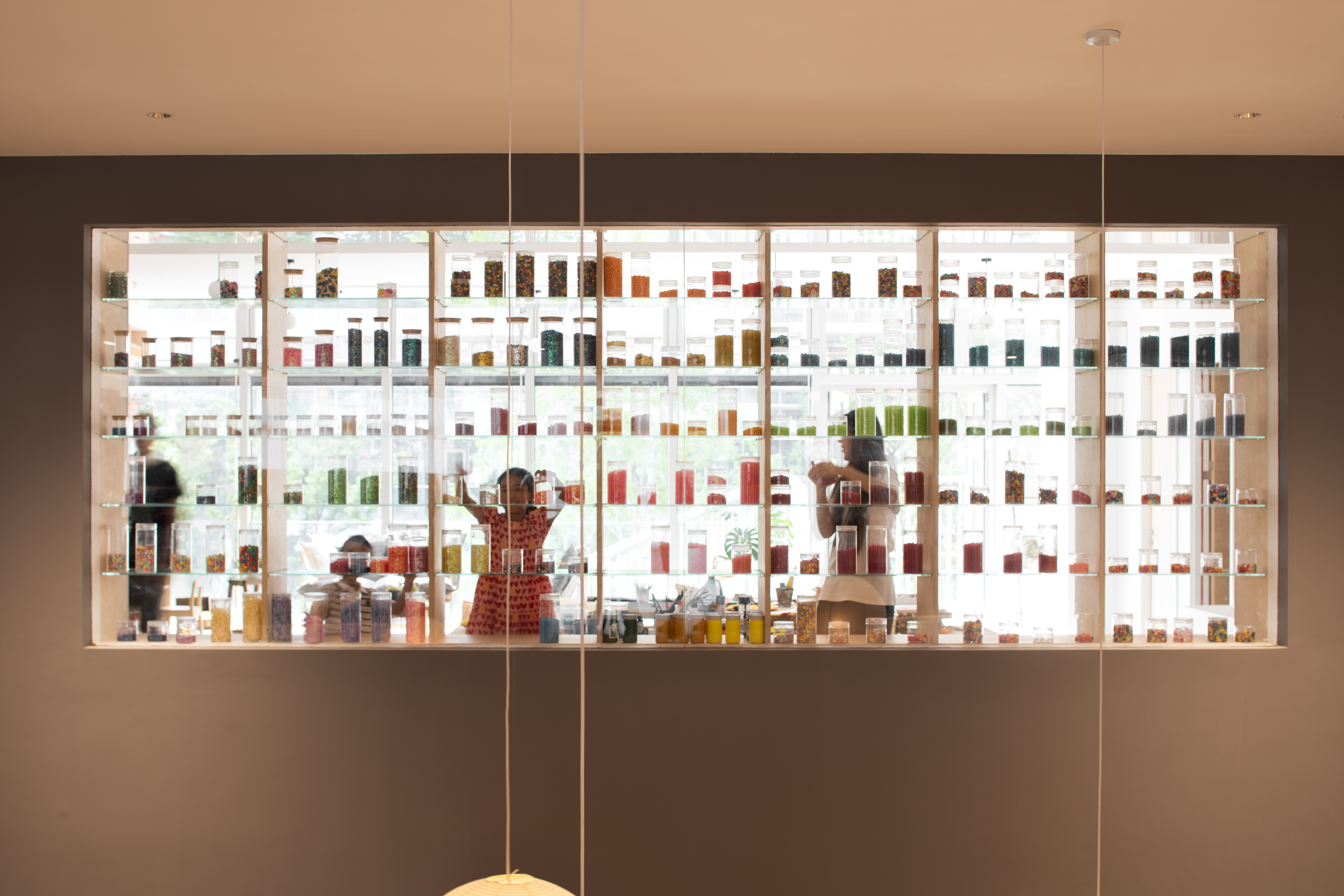 The kitchen at Unity Preschool serves not only as a place to prepare meals but also as an integral part of the educational experience. We have employed a design with a full-wall transparent glass, allowing children to witness the entire cooking process. The kitchen area is adjacent to the family-style dining area in the Piazza, enabling a structured flow of cooking, arrangement, serving, dining, and recycling, all within the same space. Through this design, children can systematically understand the origin of food and actively participate in the entire food preparation process.