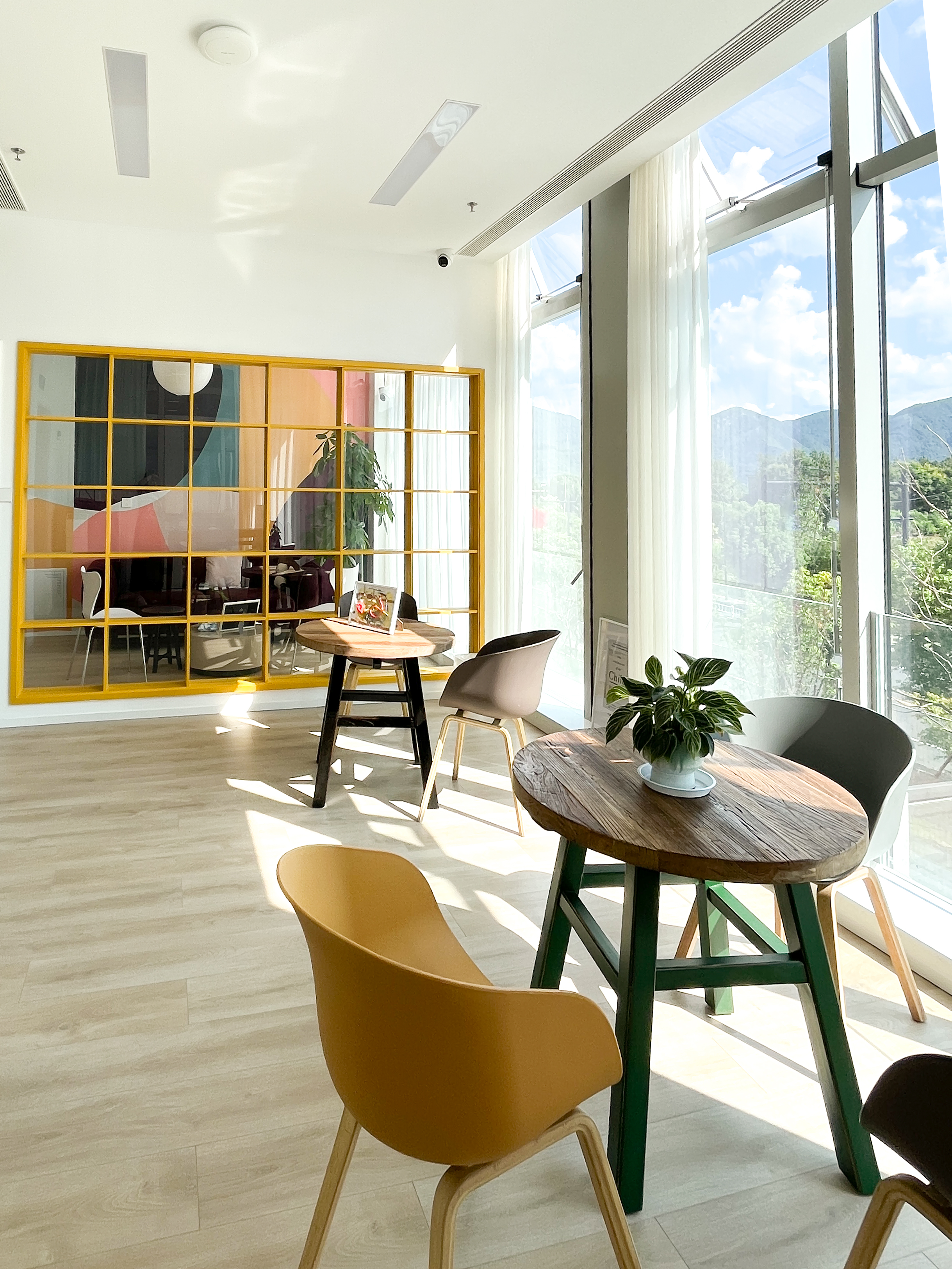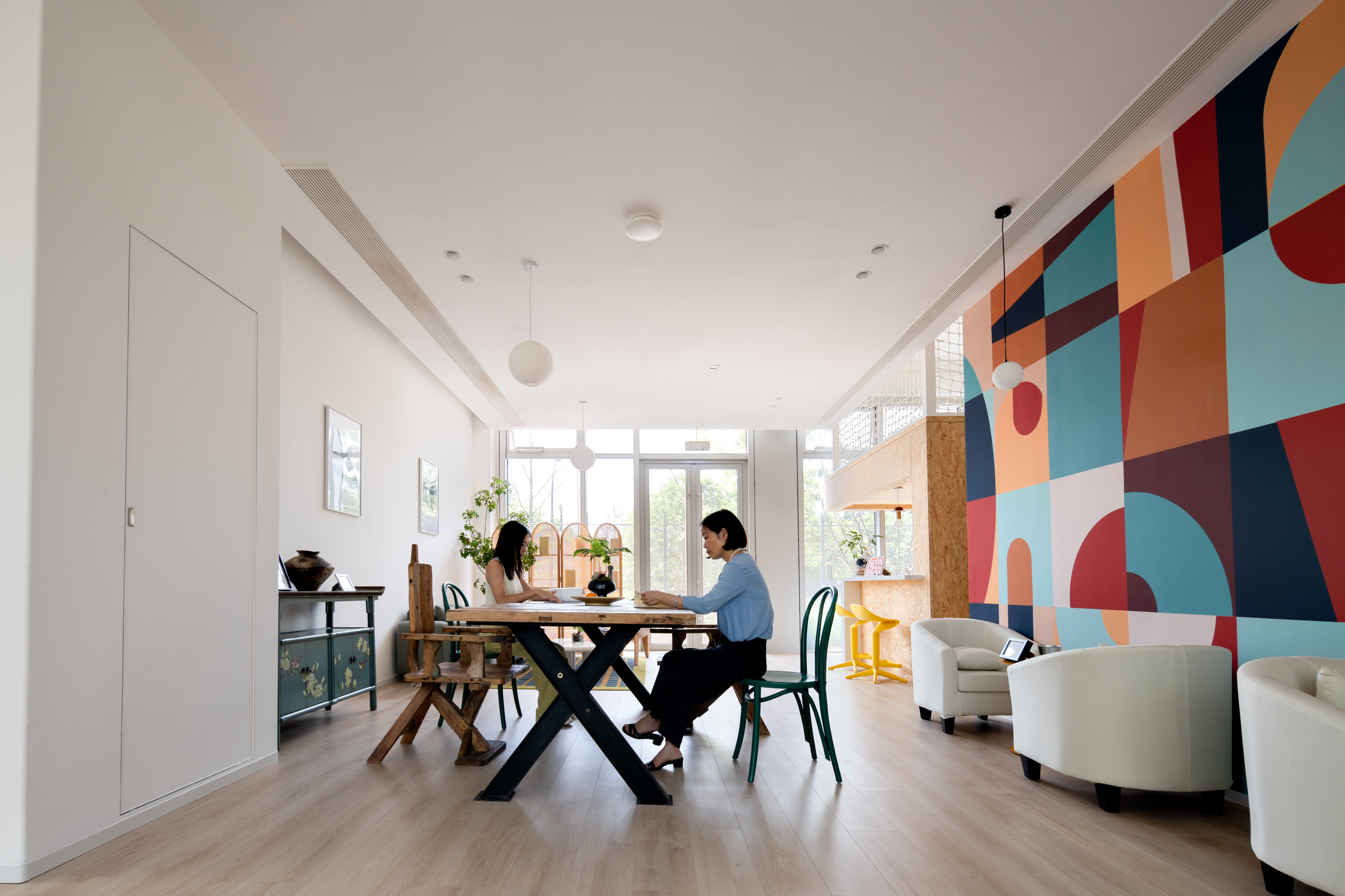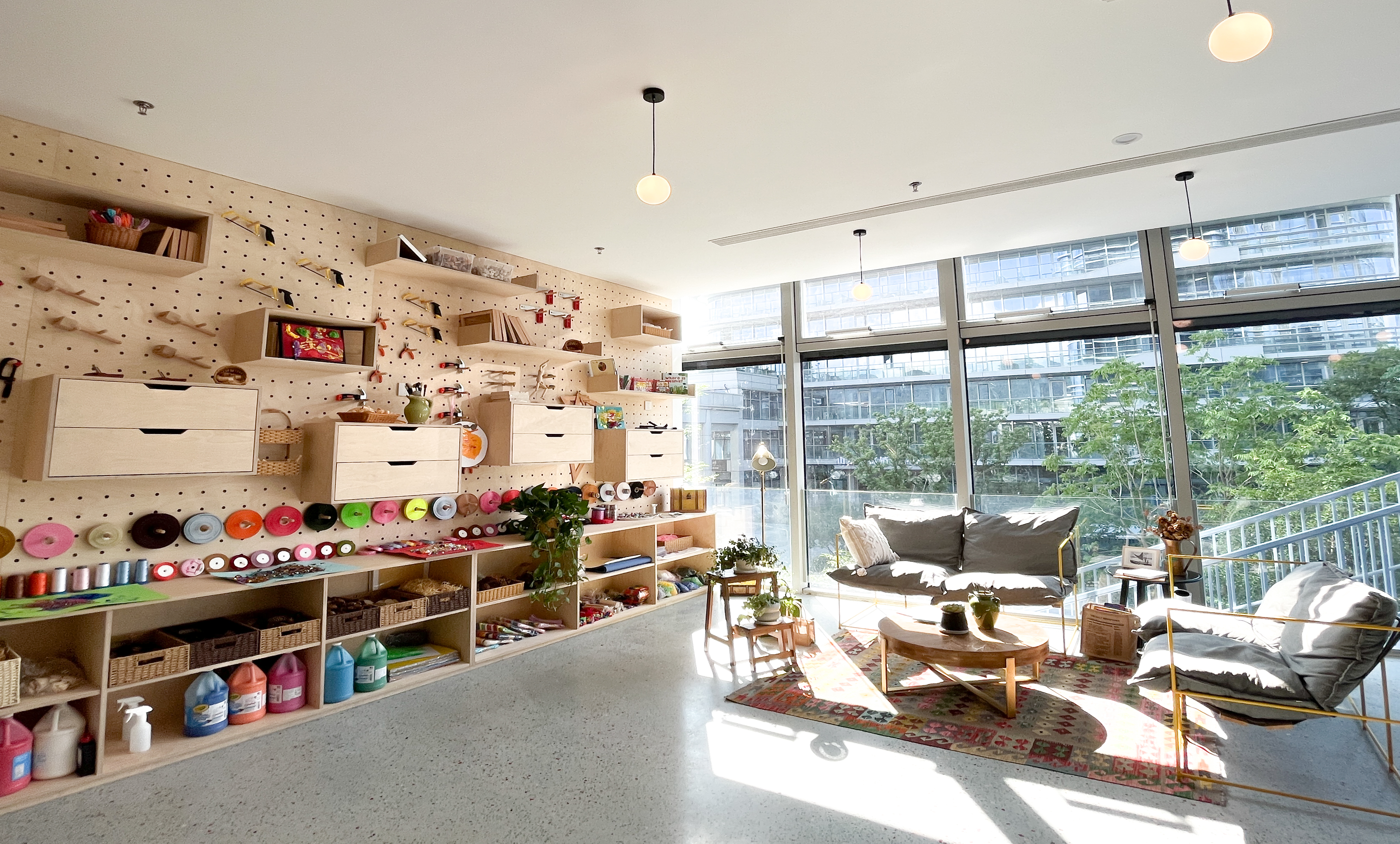 On regular weekdays, parents have the option to enjoy coffee and taste the handmade snacks from the school at the first-floor café. They can utilize this space for work, communication, and learning. Additionally, on the second floor, we have dedicated private spaces for one-on-one communication between parents and teachers regarding their children's progress and well-being, promoting effective and personalized communication between the school and parents.