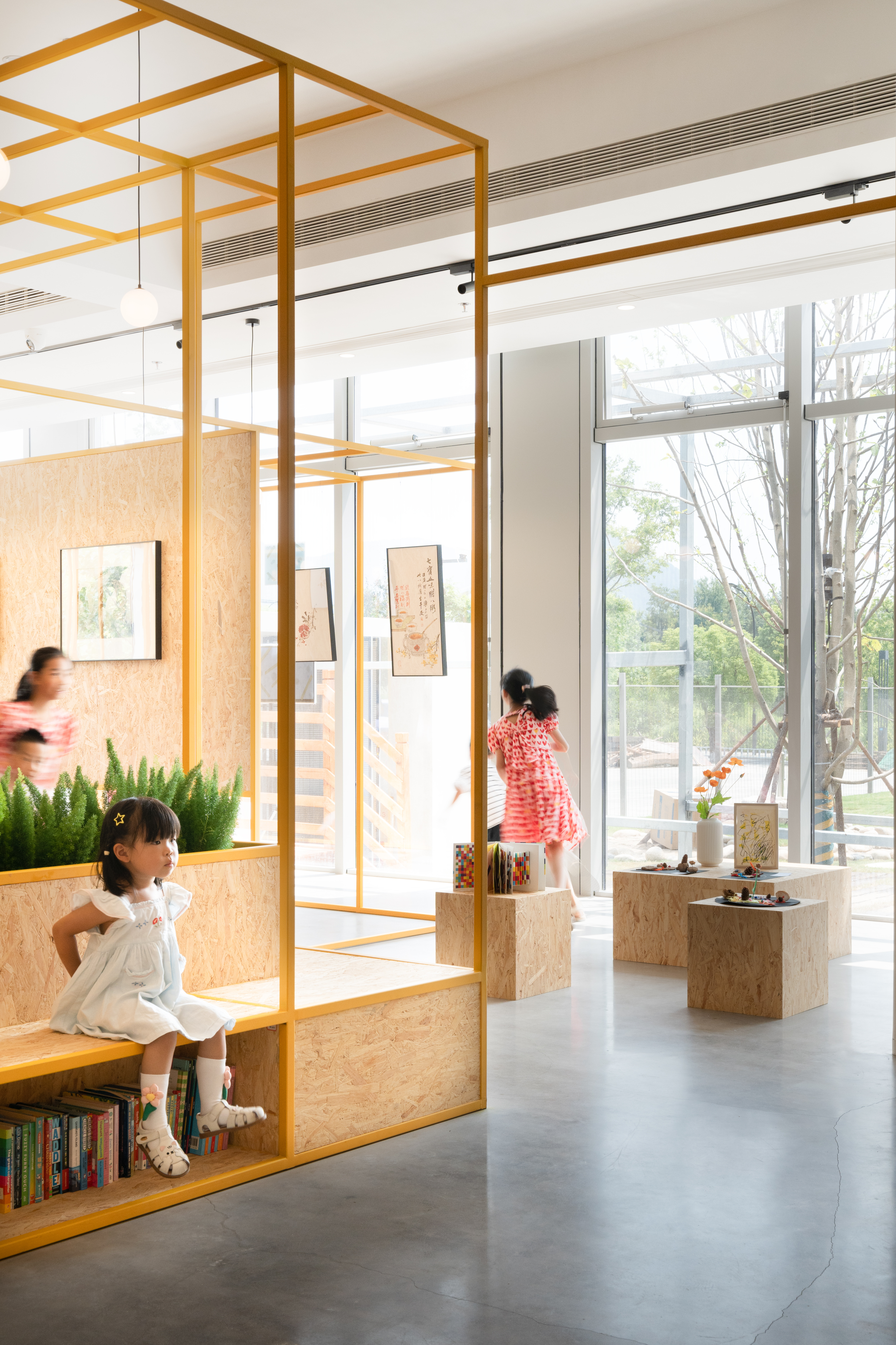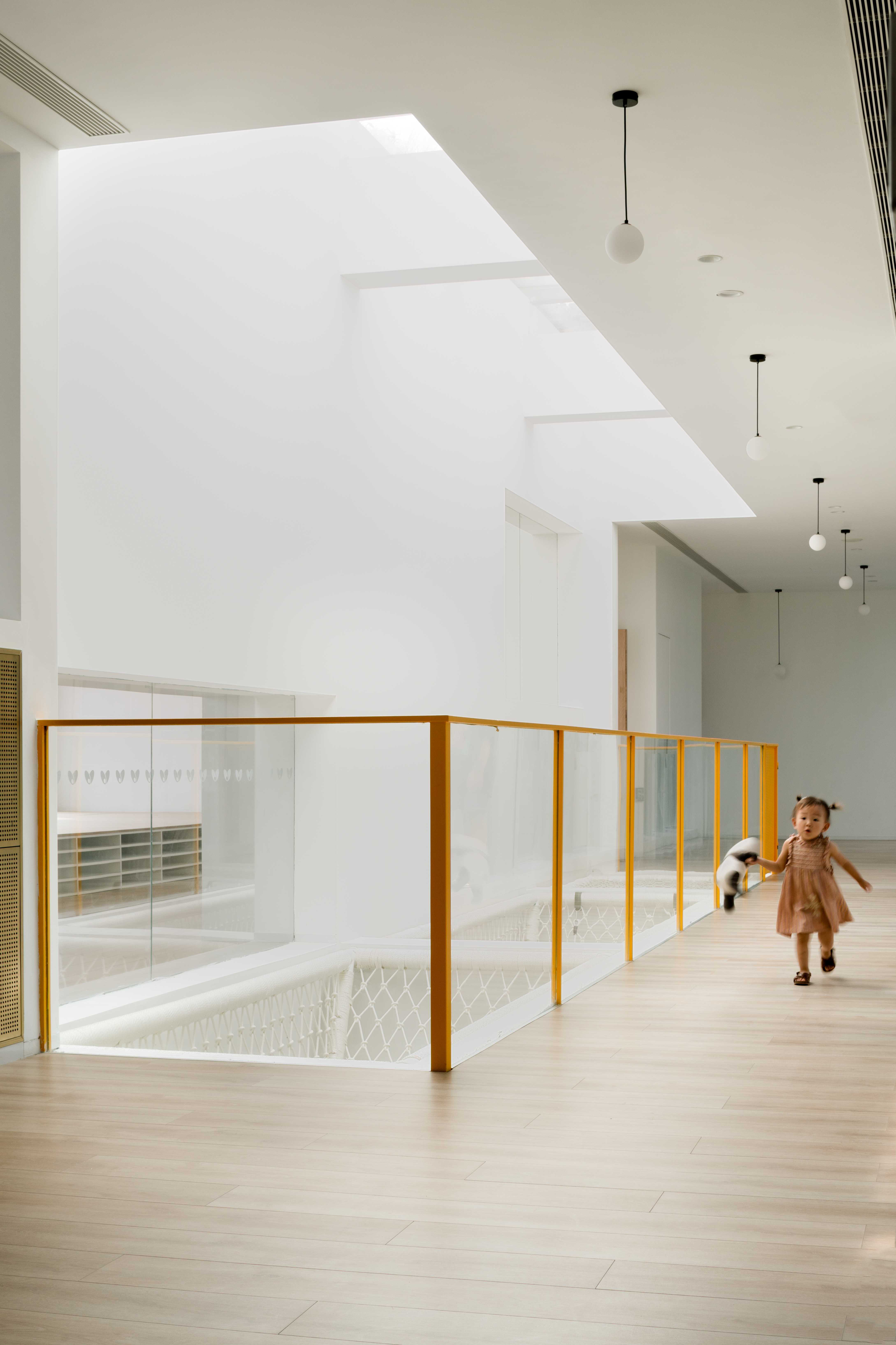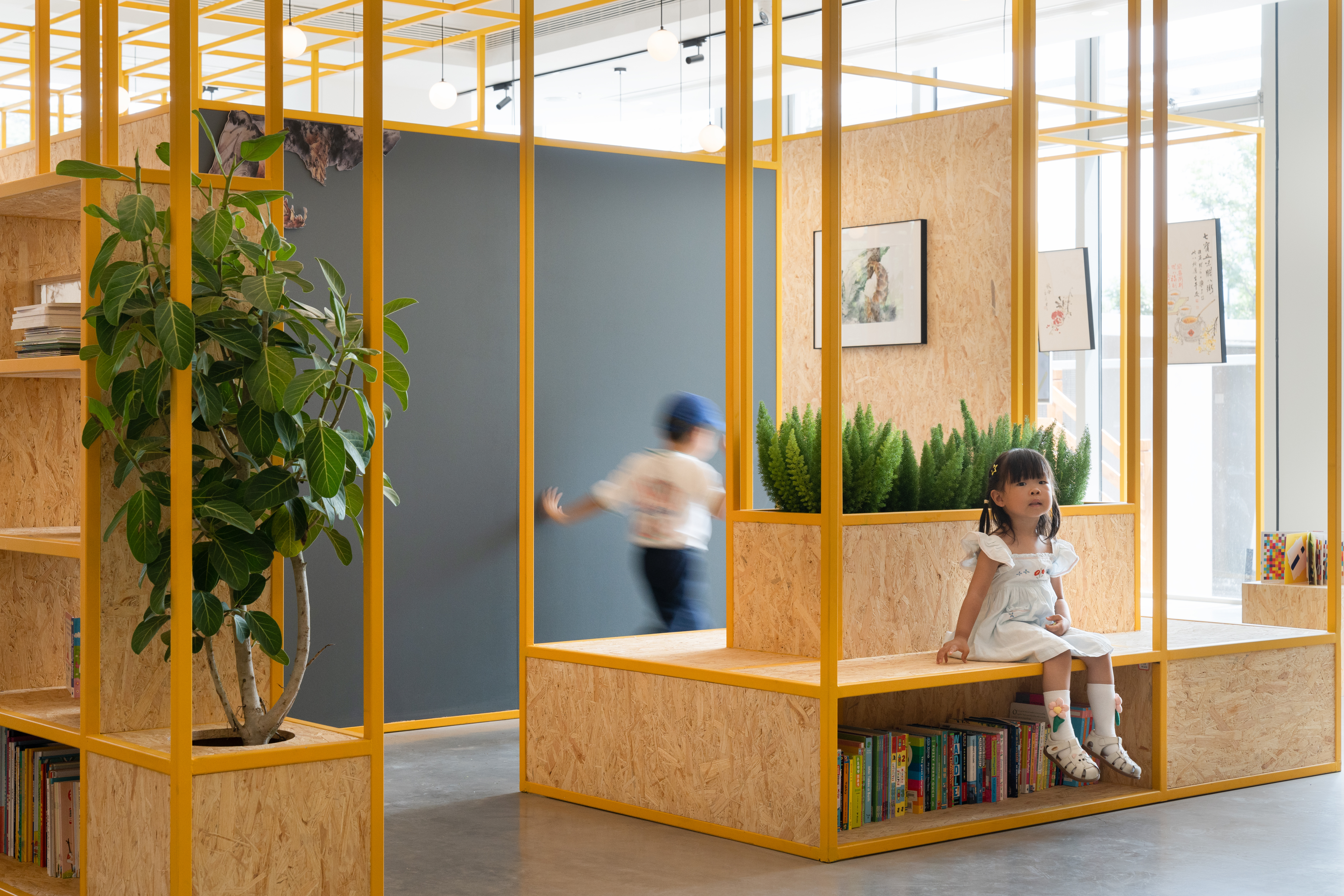 Adjacent to the central square is a gallery-style library. In contrast to the grand architectural space of the central stage, the gallery-style library features low bookshelves and small spaces with short steps proportioned to children's height. This design allows children to enter a reassuring and comfortable space for reading and aesthetic experiences. Studio Jia firmly believe that educational spaces should not be limited to a single function. Therefore, educational spaces at Unity Preschool are not partitioned with solid walls. Children can experience different spaces based on the proportion of their own bodies to the architectural space, becoming flexible users of the space and exploring the infinite possibilities of learning and growth.