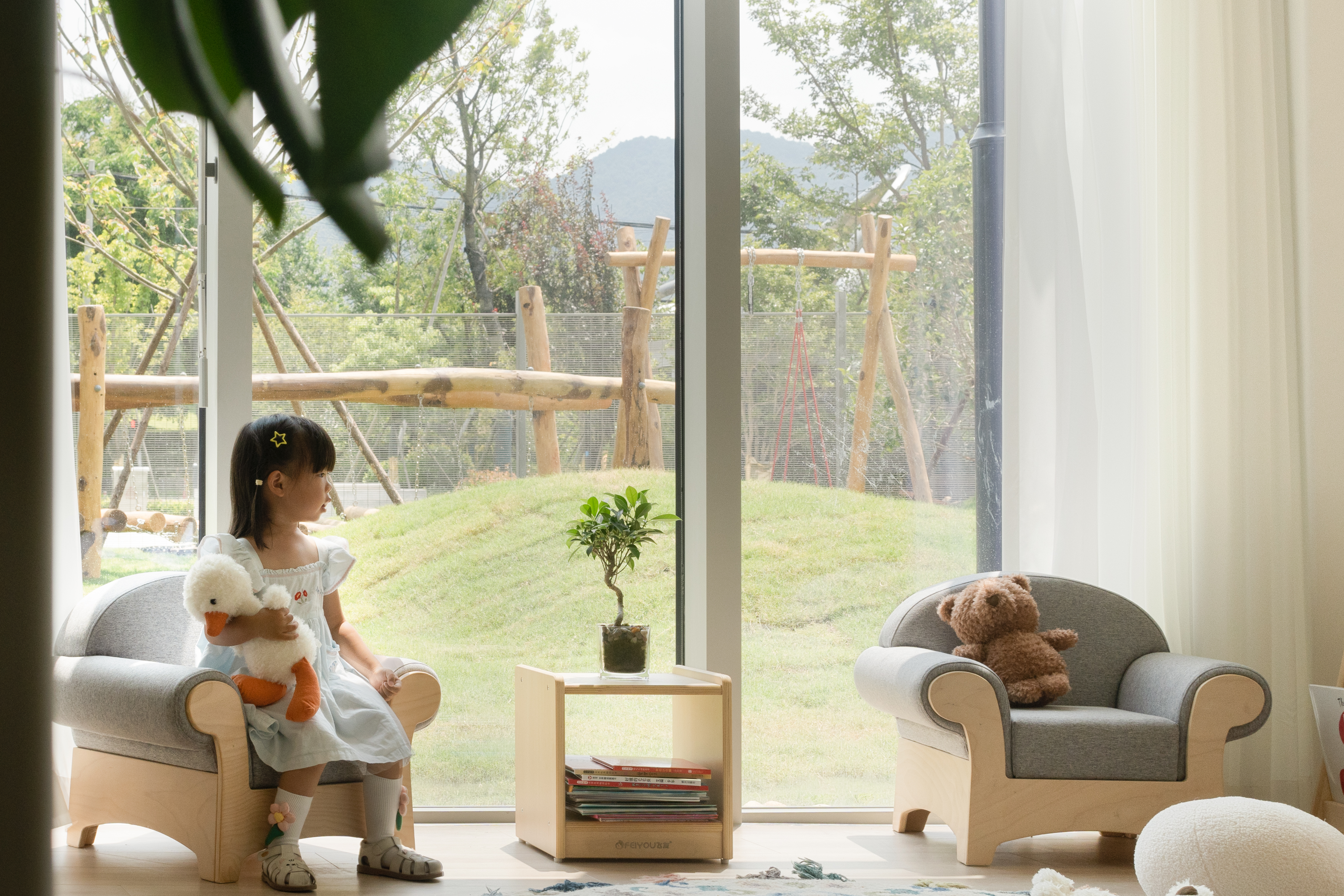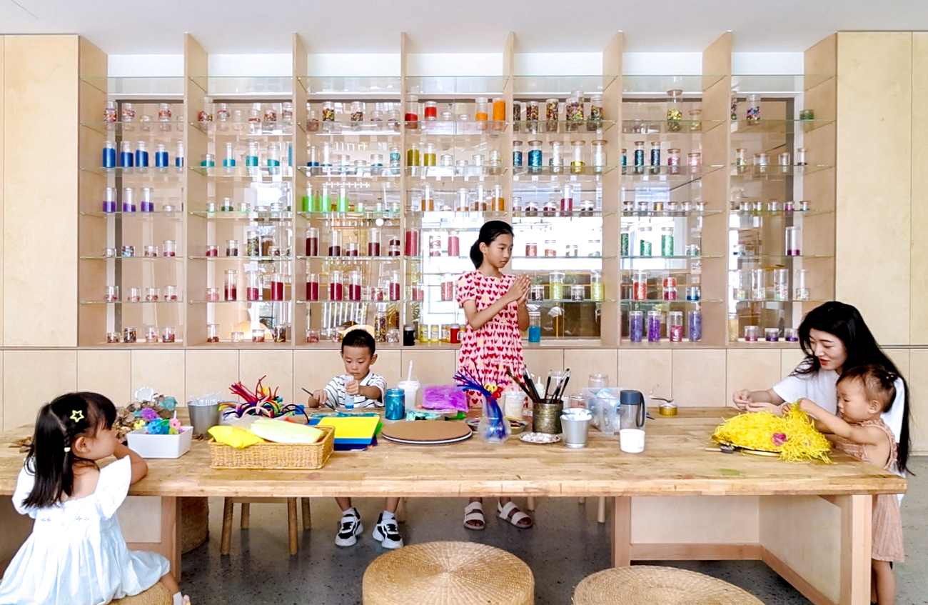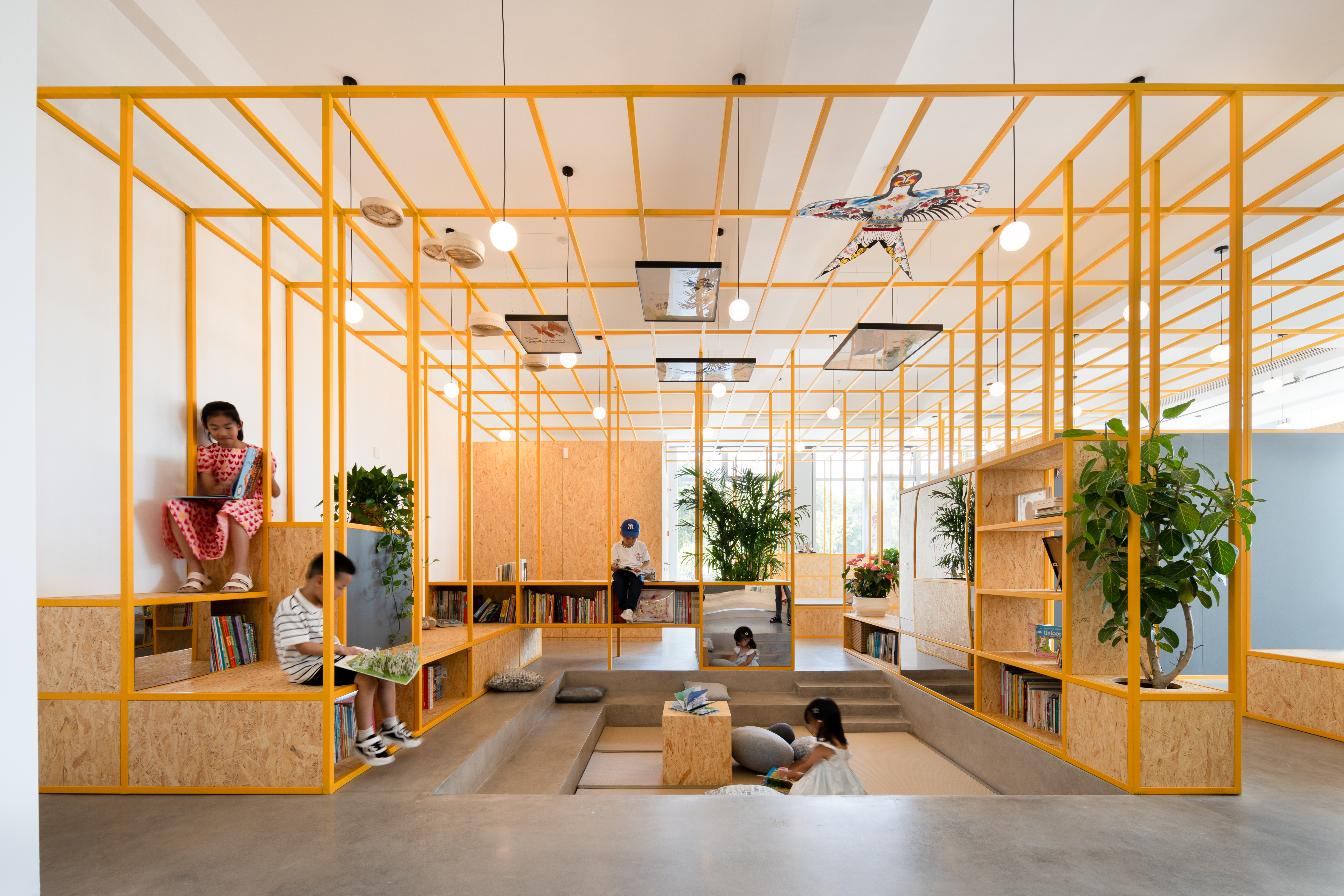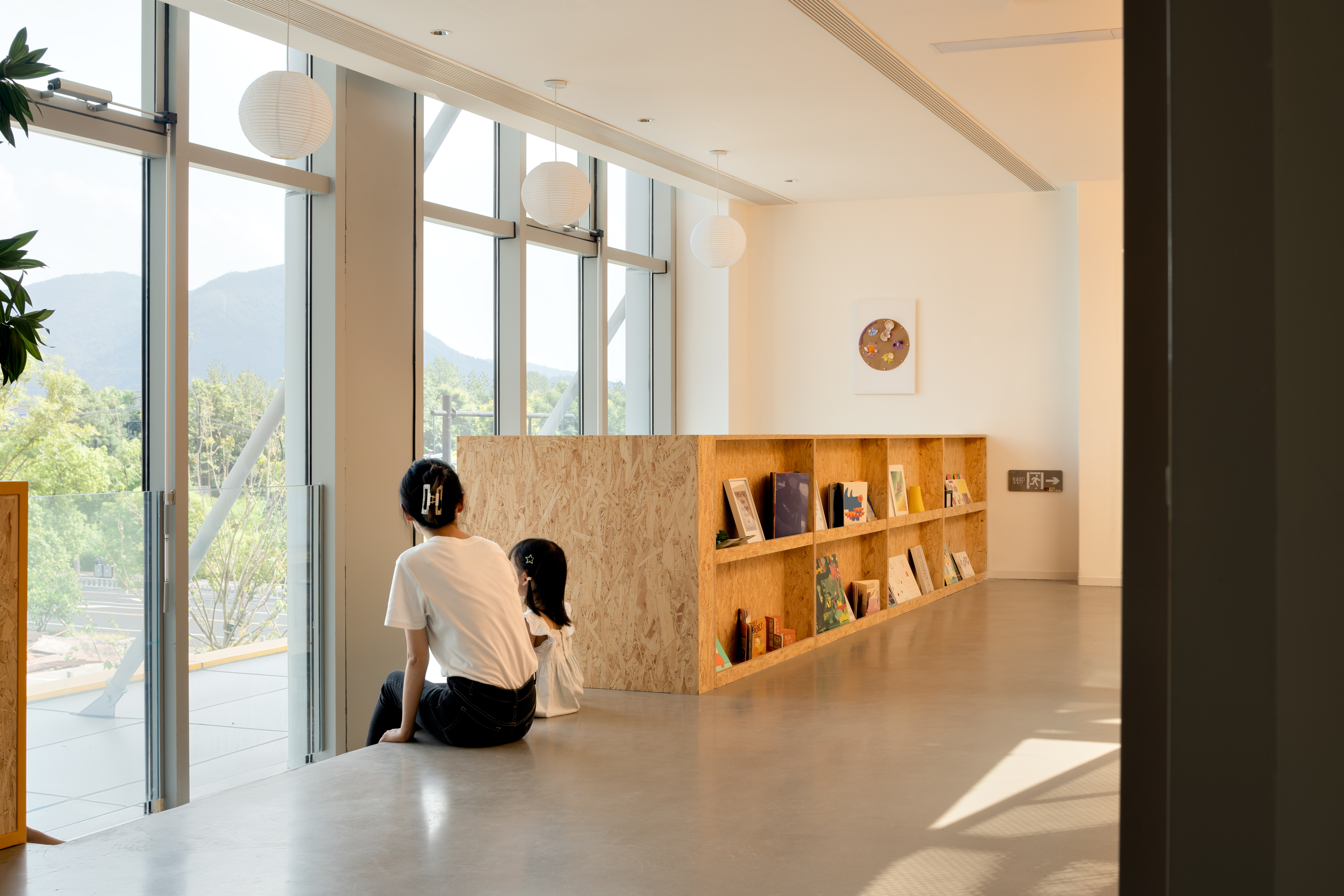 Adjacent to the central square is a gallery-style library. In contrast to the grand architectural space of the central stage, the gallery-style library features low bookshelves and small spaces with short steps proportioned to children's height. This design allows children to enter a reassuring and comfortable space for reading and aesthetic experiences. Studio Jia firmly believe that educational spaces should not be limited to a single function. Therefore, educational spaces at Unity Preschool are not partitioned with solid walls. Children can experience different spaces based on the proportion of their own bodies to the architectural space, becoming flexible users of the space and exploring the infinite possibilities of learning and growth.